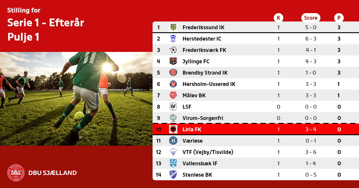 Nr. 11-14 samt dårligste 10´er rykker ned i S2 til foråret 2026