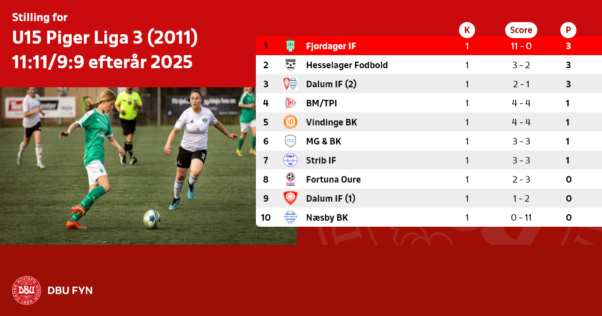 U15 Piger Liga 3 (2011) 11:11/9:9 efterår 2025