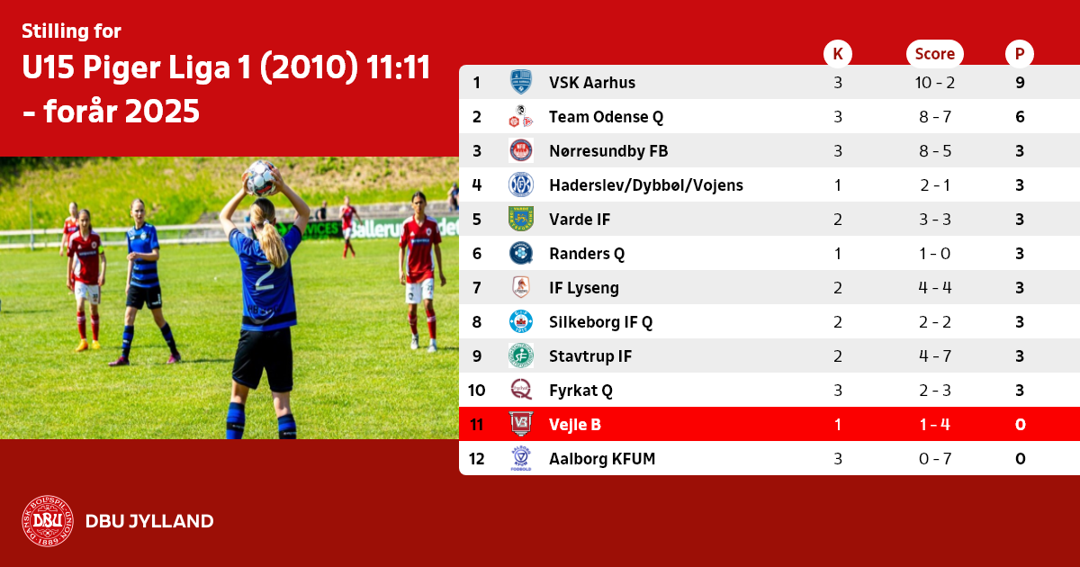U15 Piger Liga 1 (2010) 11:11 - forår 2025