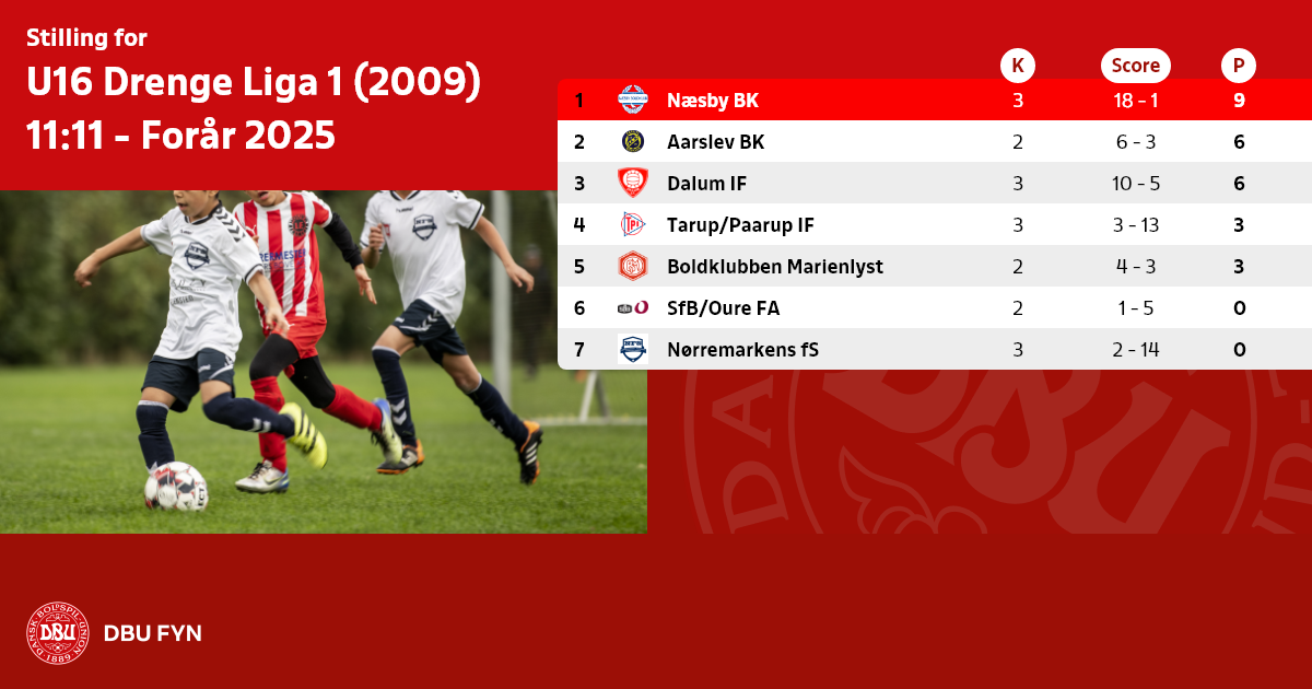 U16 Drenge Liga 1 (2009) 11:11 - Forår 2025