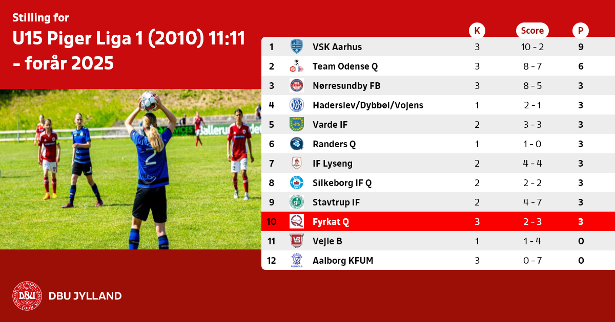 U15 Piger Liga 1 (2010) 11:11 - forår 2025