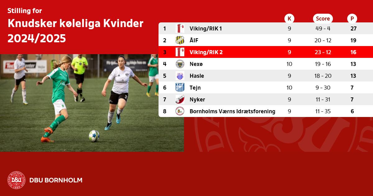 Top 4 spiller om bornholmsmesterskabet i slutspillet og 5-8 spiller om at vinde kvindeliga-2.
