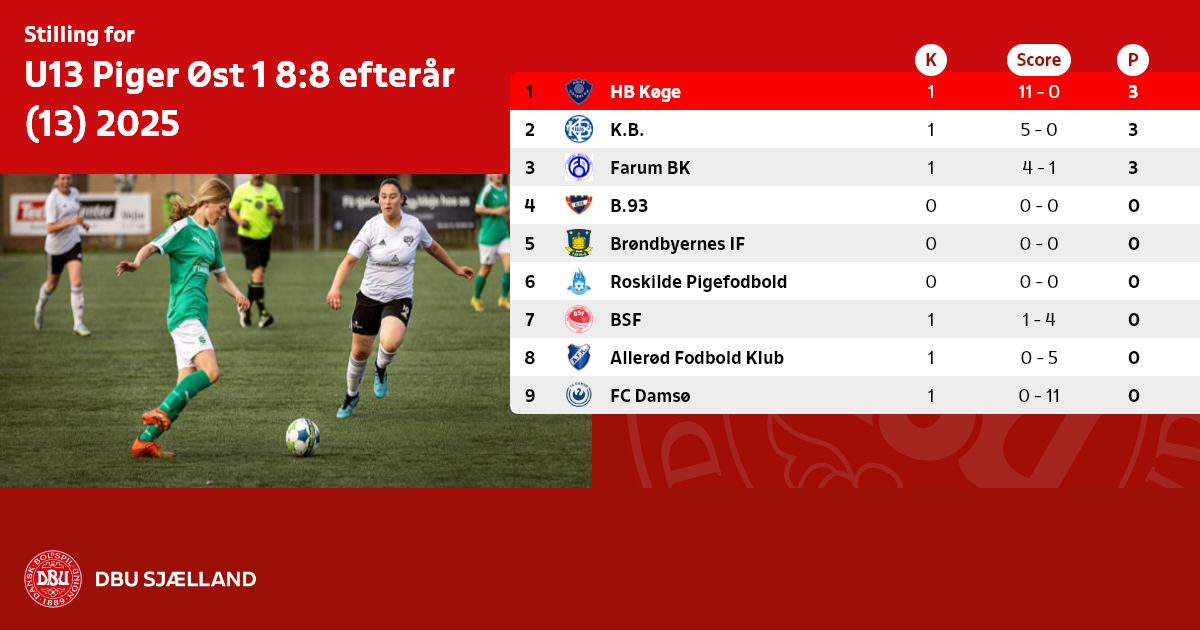U13 Piger Øst 1 8:8 efterår (13) 2025
