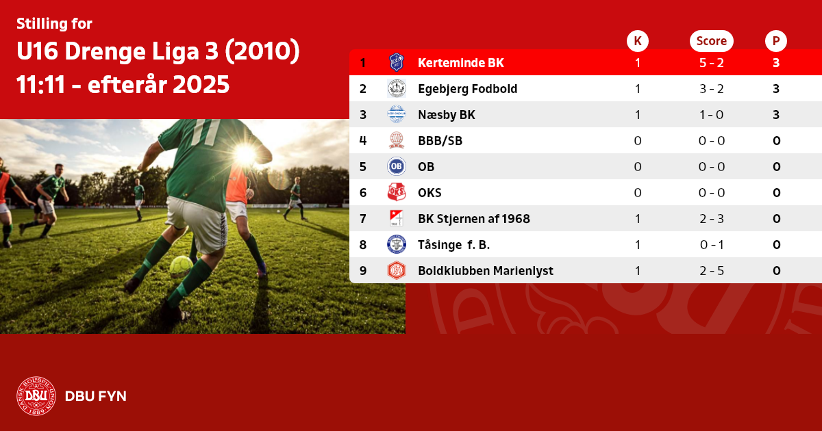 U16 Drenge Liga 3 (2010) 11:11 - efterår 2025
