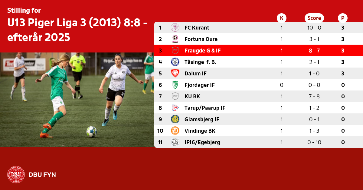 U13 Piger Liga 3 (2013) 8:8 - efterår 2025