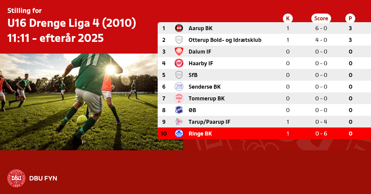 U16 Drenge Liga 4 (2010) 11:11 - efterår 2025