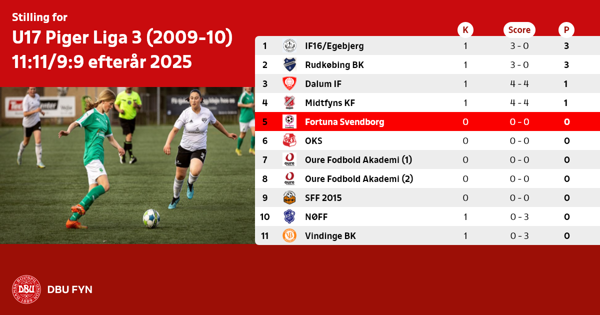 U17 Piger Liga 3 (2009-10) 11:11/9:9 efterår 2025